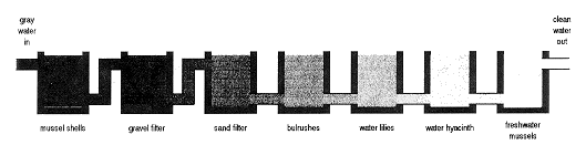 Of these constructed wetlands the Oasis book says, "Caution: Proven for cleaning up